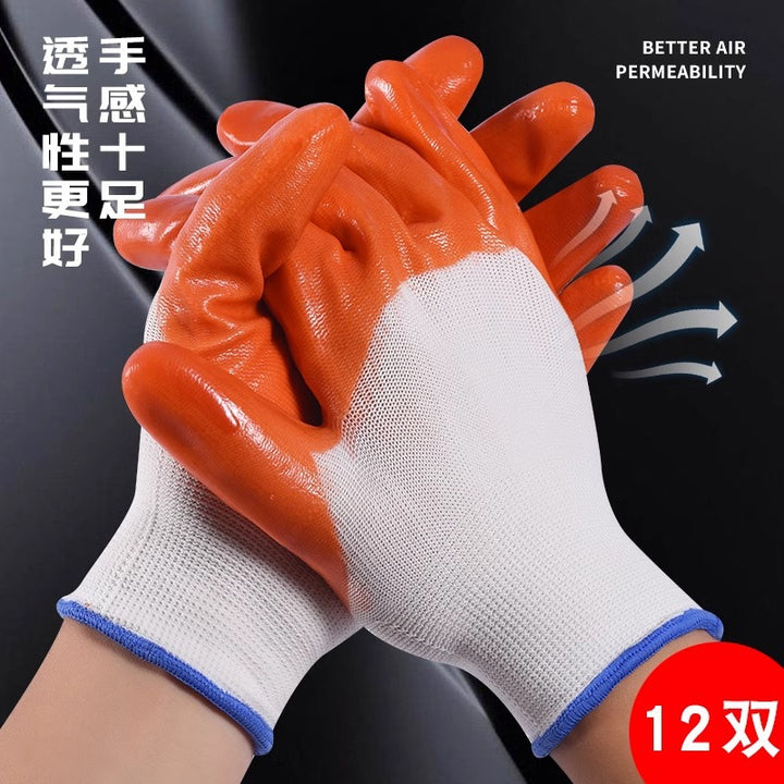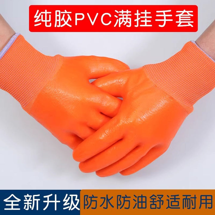 Labor insurance gloves work full hanging construction site work rubber waterproof PVC full glue hanging glue full glue thickened wear-resistant rubber