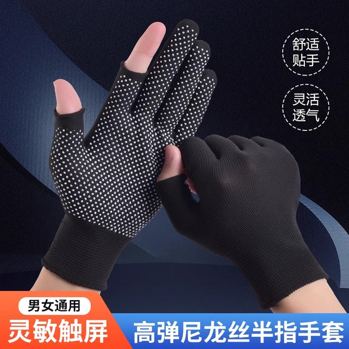 Labor insurance wear-resistant thin work men and women work dew two fingers non-slip cycling packing gloves special courier sorting