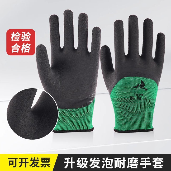 Labor insurance wear-resistant work thickened rubber breathable non-slip labor rubber foam king working men's construction site lightweight gloves