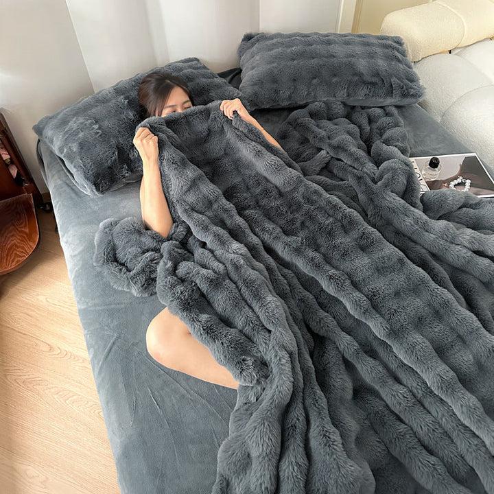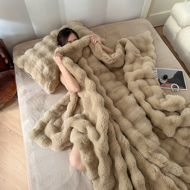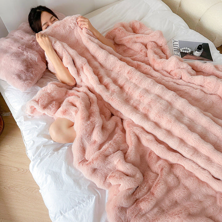 Lady Miss | Autumn and Winter Thickened Warm Imitation Fur Rabbit Plush Blanket Sofa Blanket ...