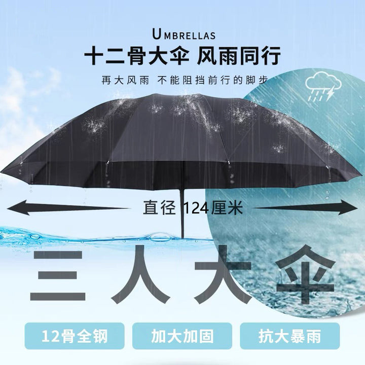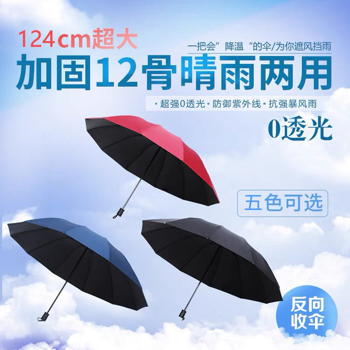 Large 3-4 person umbrella, high-end folding umbrella, vinyl sunscreen umbrella, reinforced parasol, printed advertising umbrella
