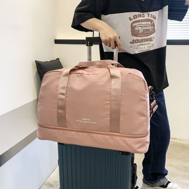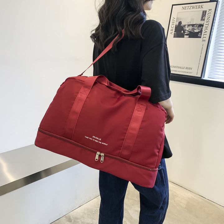 Large capacity casual simple clothing storage bag long and short cover tie rod travel bag expandable Oxford cloth duffel bag