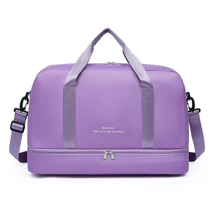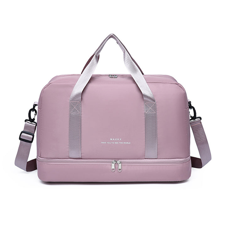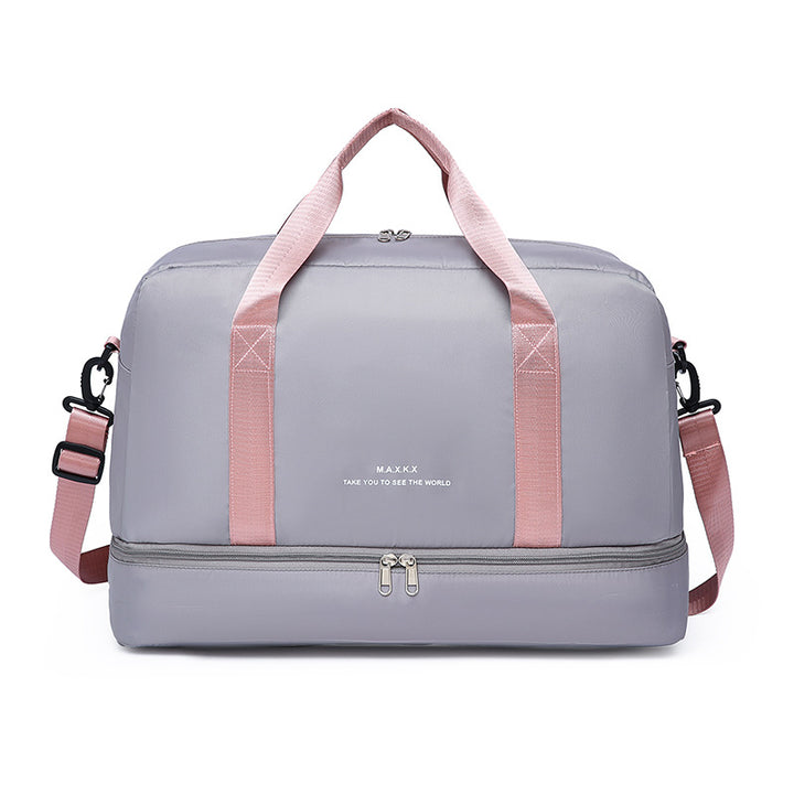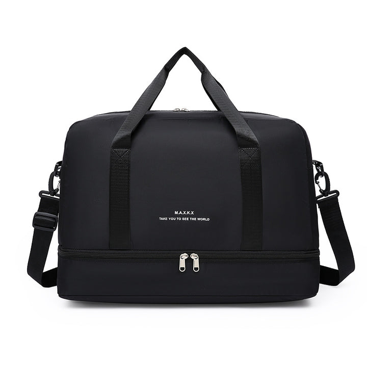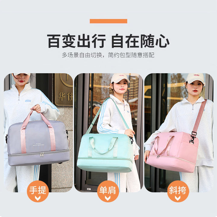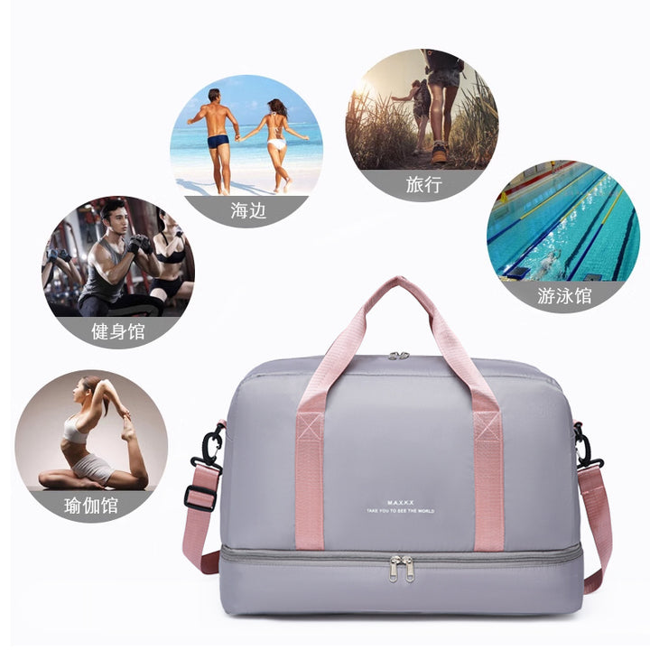 Large capacity fashion fitness travel bag, water-proof Oxford cloth, separate zipper layer at the bottom, wet and dry separation leisure bag