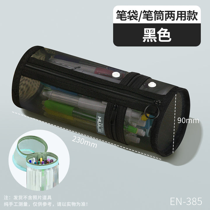 Large-capacity pen holder, primary school student pencil bag, transparent mesh stationery bag...