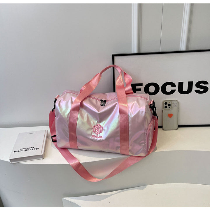 Large capacity short trip bag fashion pearlescent colorful women's yoga bag dry and wet separation portable clothing storage bag