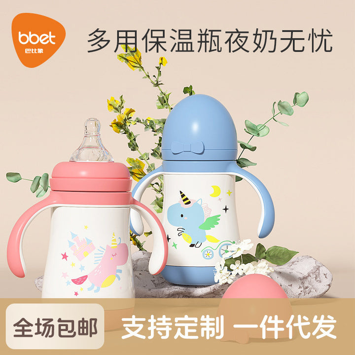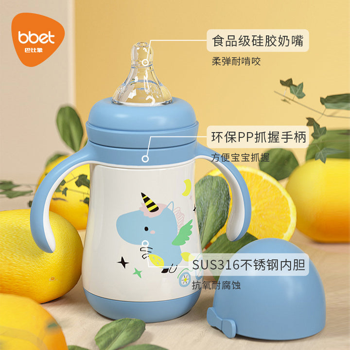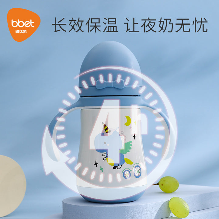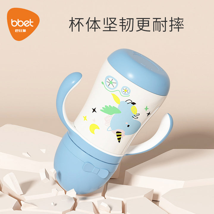 Large-capacity straw cup drinking bottle 316 stainless steel water cup children's thermos cup baby learning drinking cup duck bill dual-purpose