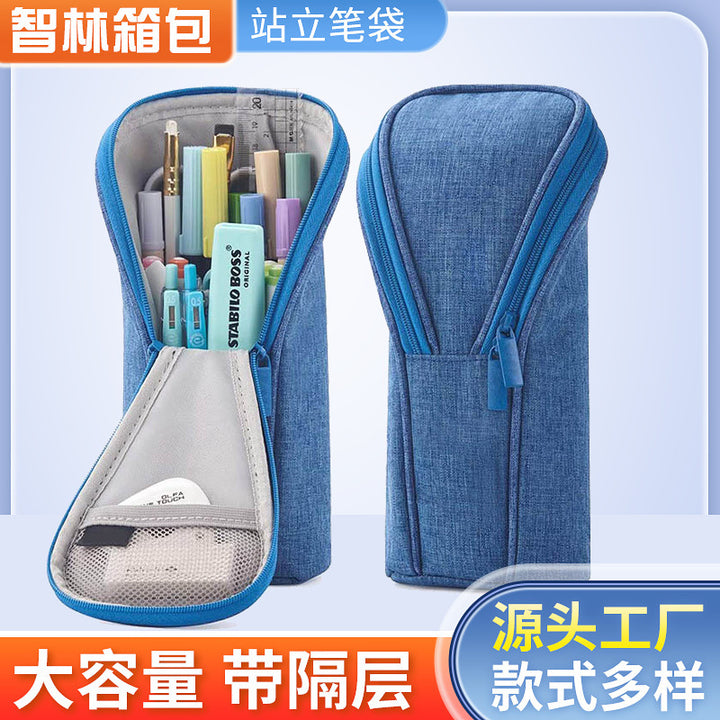 Large capacity student standing pencil case office exam stationery bag simple portable personalized multi-functional stationery bag