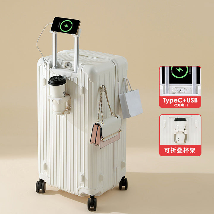 Large-capacity suitcase Women's 24-inch high-value trolley case Universal wheel travel bag Password box Multifunctional leather case