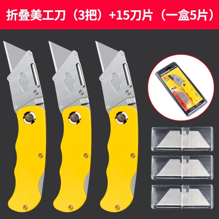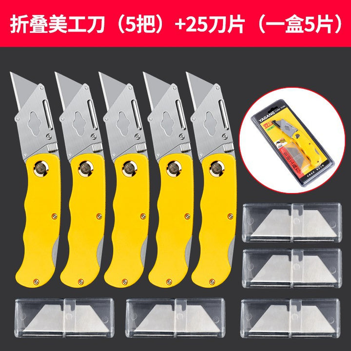 1 folding utility knife + 5 blades, 3 folding utility knives + 15 blades, 5 folding utility knives + 25 blades |