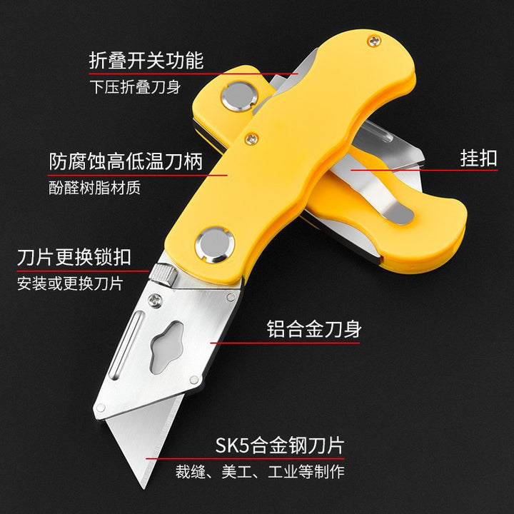 Large folding utility knife, wallpaper knife, heavy-duty paper cutter, carpet stainless steel cutting knife, express dismantling knife