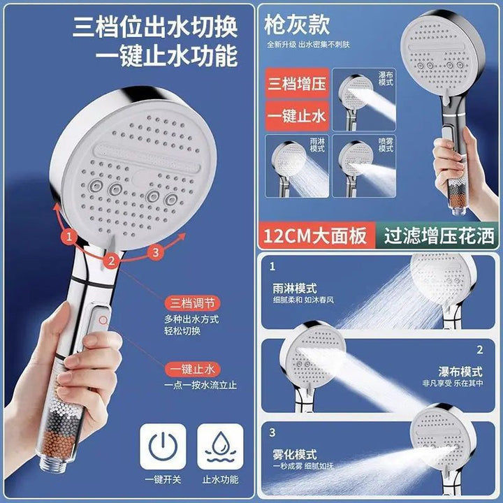 Large panel five-speed pressurized nozzle water heater Yuba spray pressurized household bath bath handheld shower