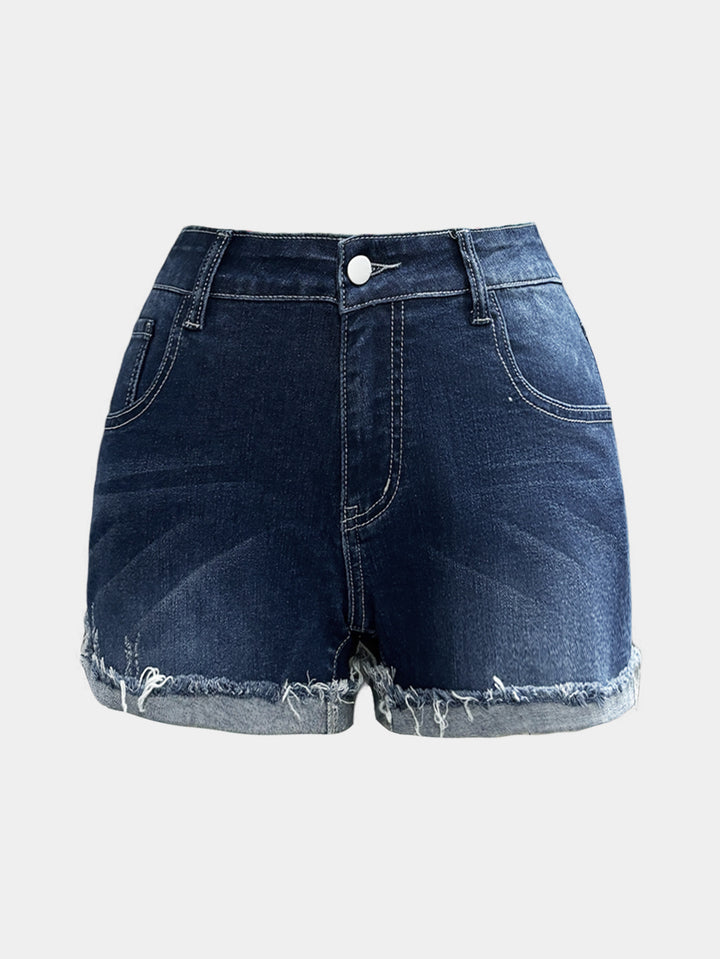Large size American Spice Girl crimped denim shorts women's summer new low-rise navel-exposed...