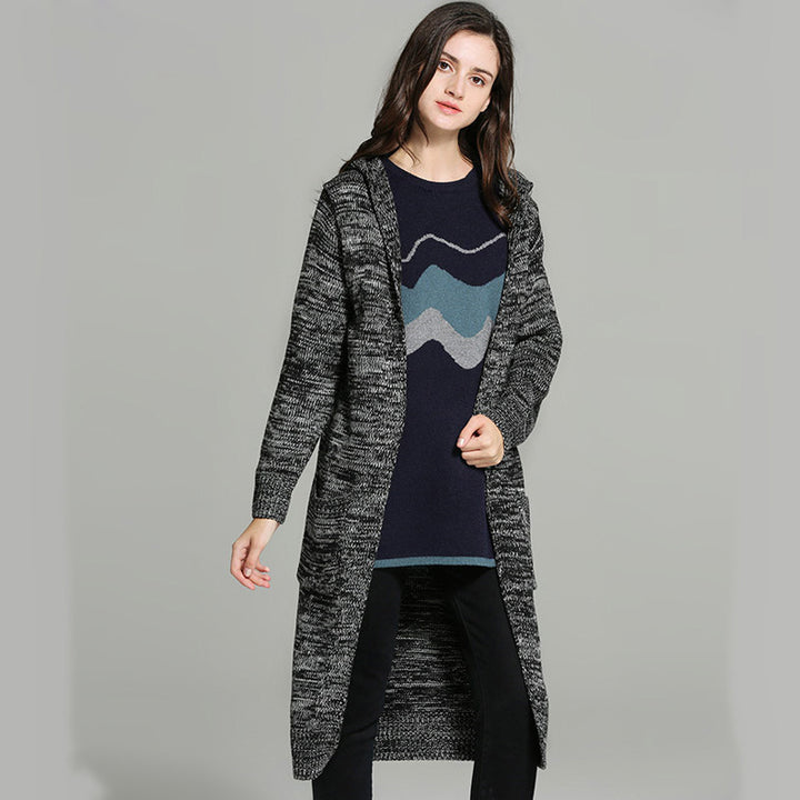 Large Size Casual Cardigan Knitted Versatile Hooded Sweater Jacket Female Sweater Factory Direct Sales