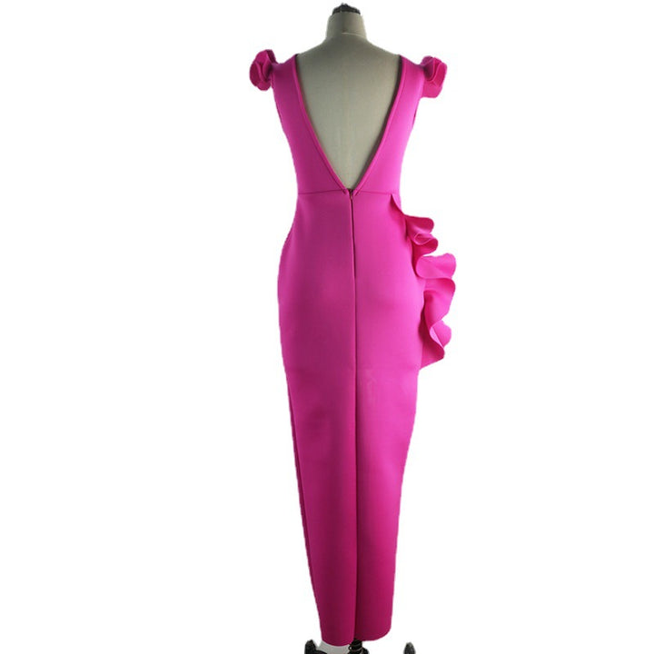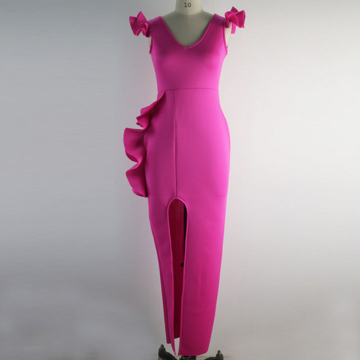 Large Size Ruffle Edge Deep V Sexy Split Hip Wrap Dress Dress, Women's Dress Bodycon Dresses