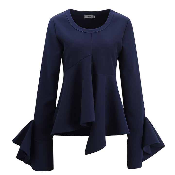 Large Size Women's Irregular Pendulum Crew Neck Long Sleeve T-Shirt Lotus Leaf Edge Casual Ve...
