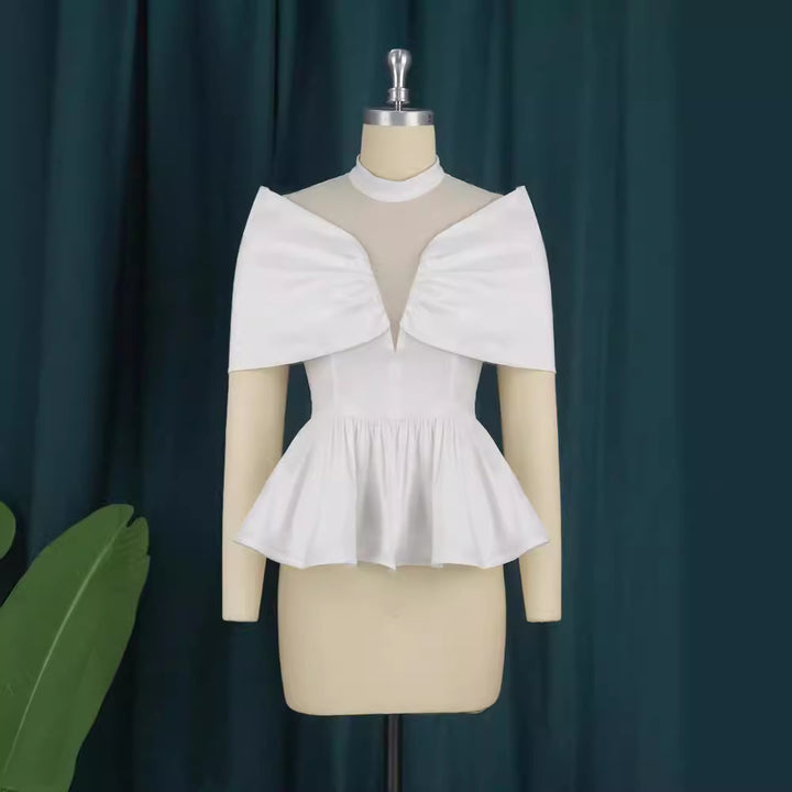 Large Size Women's Turtleneck Perspective Splicing Dress Sleeves High Elastic Elegant Lotus Leaf Pendulum Shirt Top Women's Tops