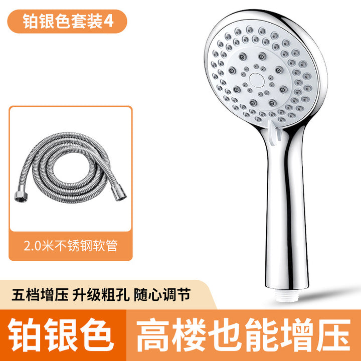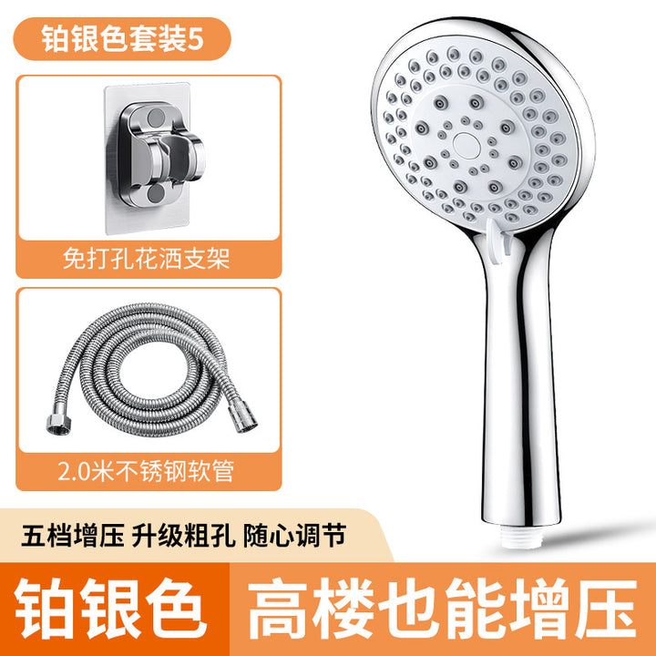 Fifth gear [large panel] single nozzle [thick hole and large water outlet], Five-speed large panel + 1.5m encryption tube, Five-speed large panel + non-punching seat, Five-speed large panel + 1.5m encryption tube + non-punching seat, Five-speed large panel + 2m encryption tube, five-speed large panel + 2m encryption tube + non-punching seat, 1.5M stainless steel encryption hose, 2M stainless steel encryption hose, No punching bracket, Black fifth gear shower, Silver five-speed shower [12cm panel] |