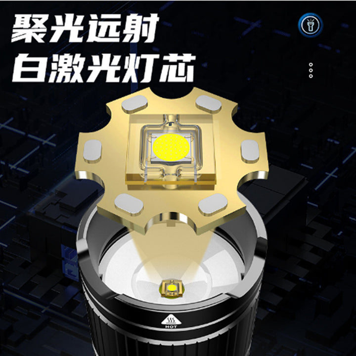 Laser cannon aluminum alloy led flashlight strong light outdoor long-range zoom USB charging work light strong light flashlight