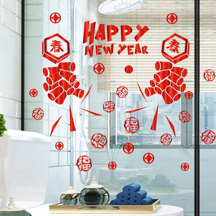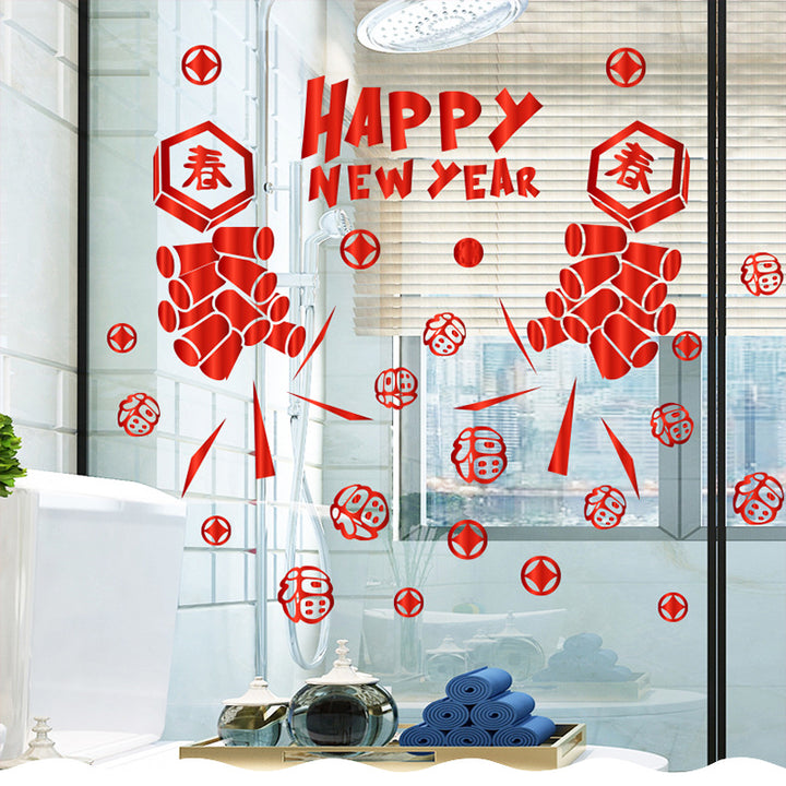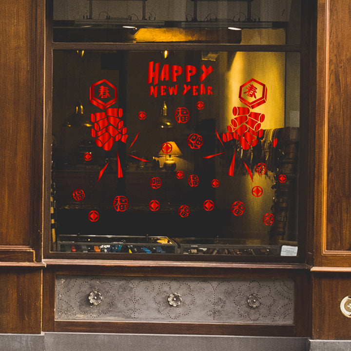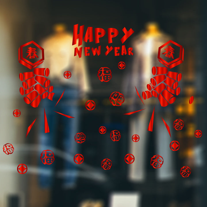 Laskin Red New Year Firecracker Window Sticker Office New Year Christmas Shop Holiday Decoration Glass Sticker J5001