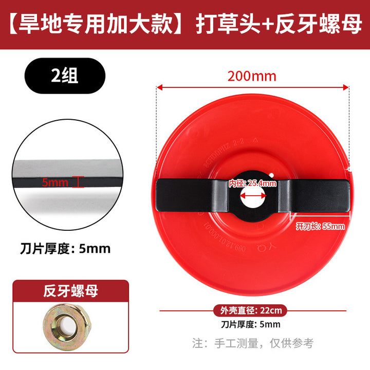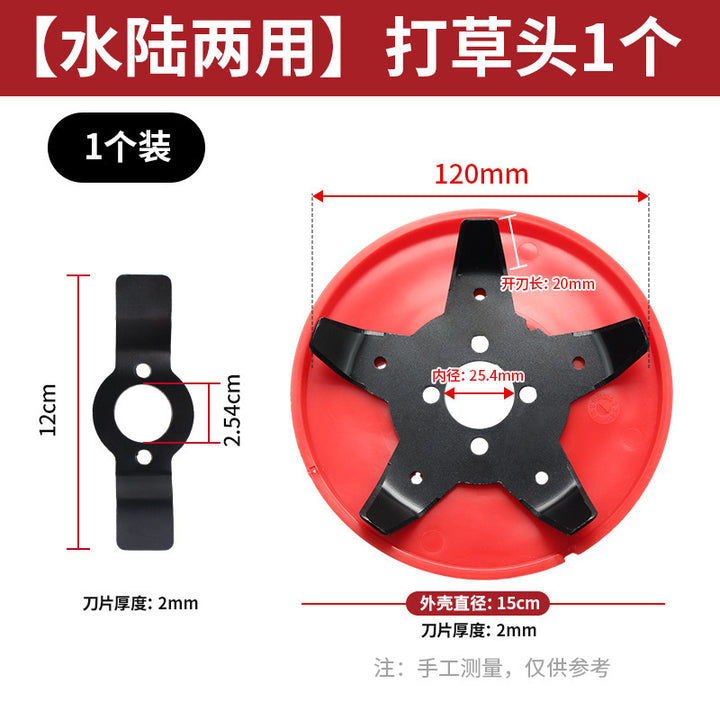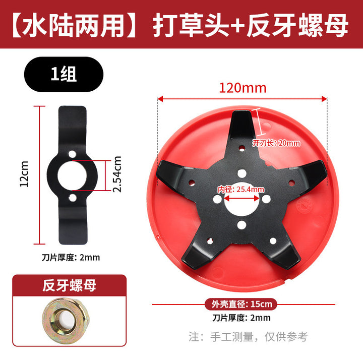 [Extra large for dryland] 1 lawn head, [Extra large for dryland] (lawn head + anti-tooth nut) 1 group, [Extra large for dryland] (grass head + anti-tooth nut) 2 groups, [Amphibious use] 1 lawn head, [Amphibious and land-use] (lawn head + anti-tooth nut) 1 group, [Amphibious and land use] (grass head + anti-tooth nut) 2 sets |