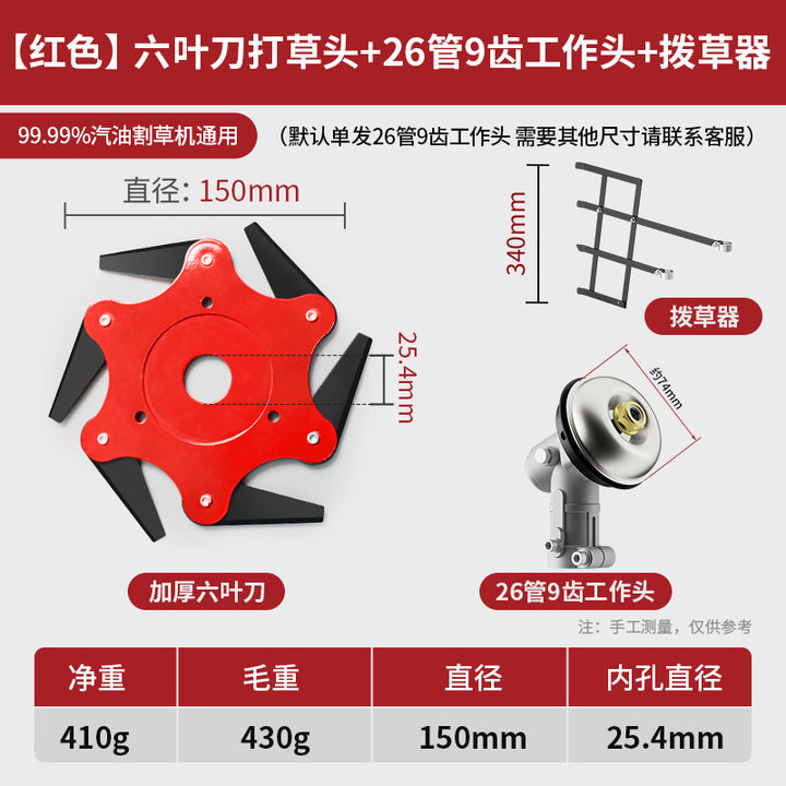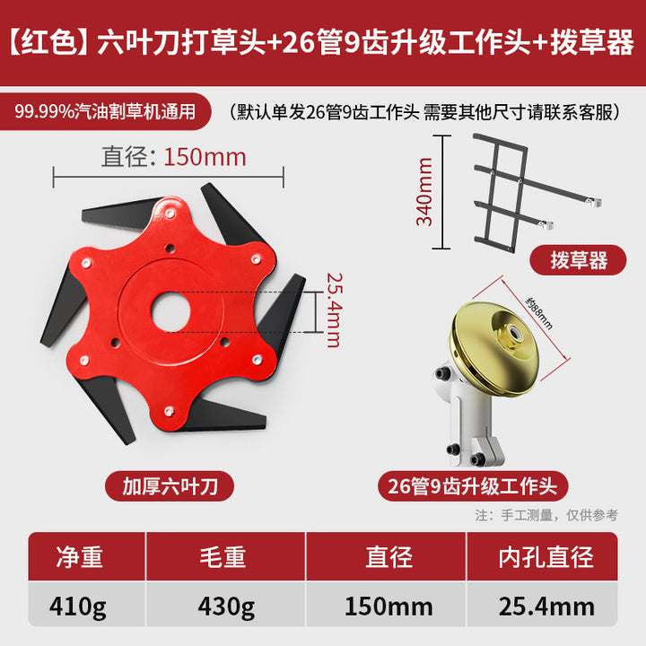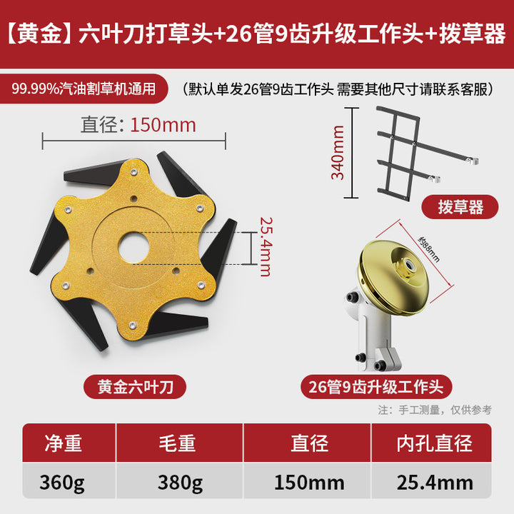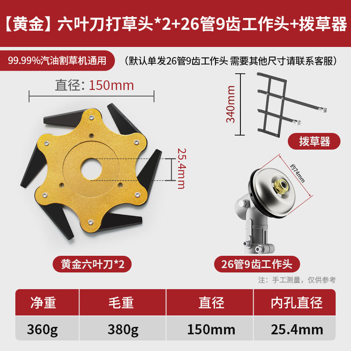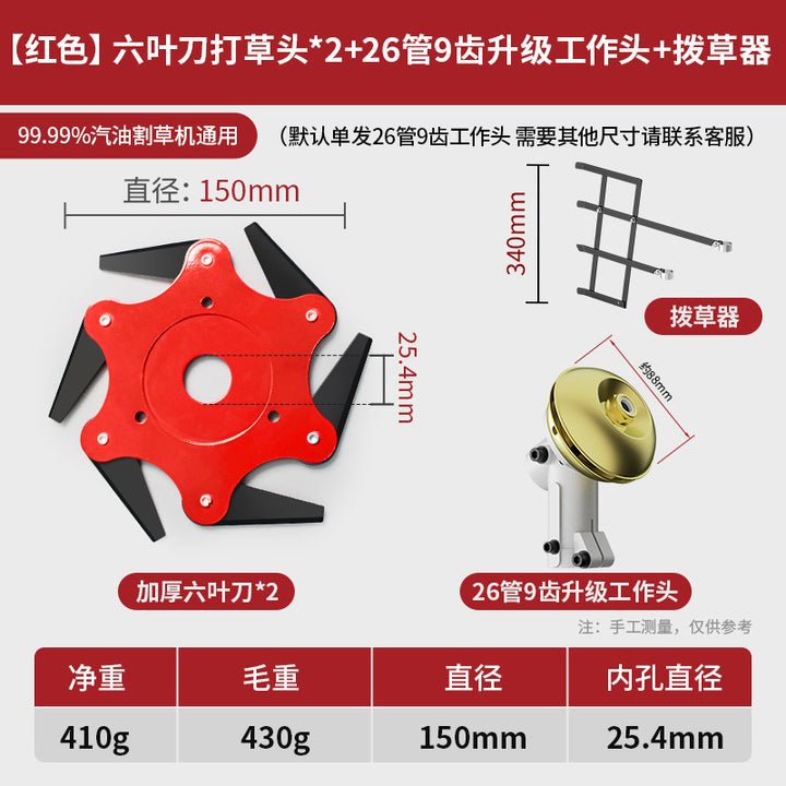 Red six-leaf knife, 2 red six-leaf knives, 5 red six-leaf knives., [Red six-leaf knife + grass mover] 1 set, [Red six-leaf knife + 26-tube 9-tooth working head] 1 group, [Red six-leaf knife + 26-tube 9-tooth working head + grass plucker] 1 group, [2 red six-leaf knives + 26-tube 9-tooth working heads + grass mover] 1 group, [Red six-leaf knife + 26 tubes and 9 teeth upgraded working head] 1 group, [Red six-leaf knife + 26-tube 9-tooth upgraded work head + grass mover] 1 group, [2 red six-leaf knives + 26 tubes and 9 teeth upgraded working head + grass mover] 1 group, Golden six-leaf knife, é»éå å¶å2äøŖ, é»éå å¶å5äøŖ, ćé»éå å¶å+ęØčåØć1ē», ćé»éå å¶å+26ē®”9齿巄ä½å¤“ć1ē», ćé»éå å¶å+26ē®”9齿巄ä½å¤“+ęØčåØć1ē», [2 golden six-leaf knives + 26-tube 9-tooth working heads + grass plucker] 1 group, [Golden six-leaf knife + 26 tubes and 9 teeth upgraded working head] 1 group, [Golden six-leaf knife + 26-tube 9-tooth upgraded work head + grass plucker] 1 group, [2 golden six-leaf knives + 26 tubes and 9 teeth upgraded working head + grass mover] 1 group |