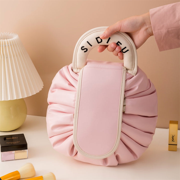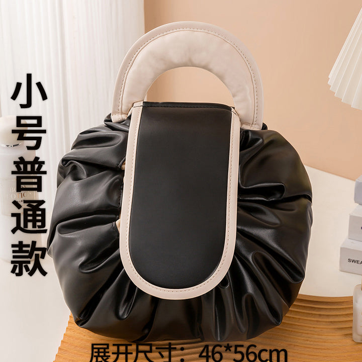 Lazy cosmetic bag large capacity portable drawstring storage bag PU waterproof toilet bag travel portable simple bundle mouth bag