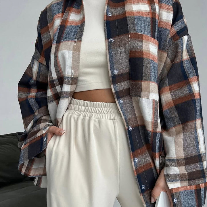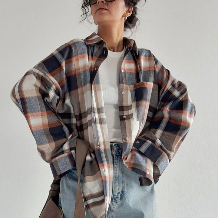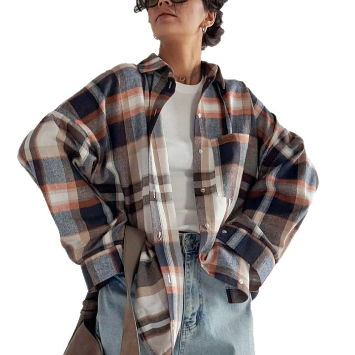 Lazy style plaid shirt female new design sense contrasting color loose long-sleeved premium versatile cardigan