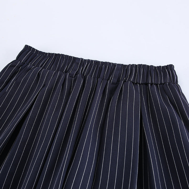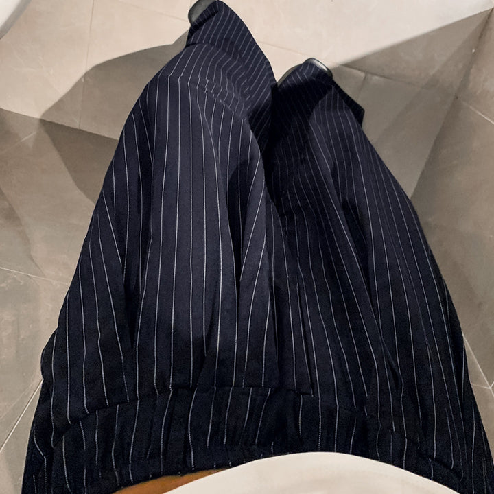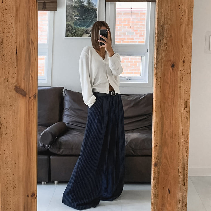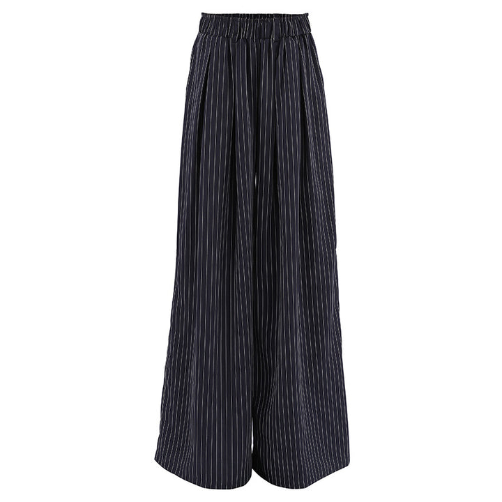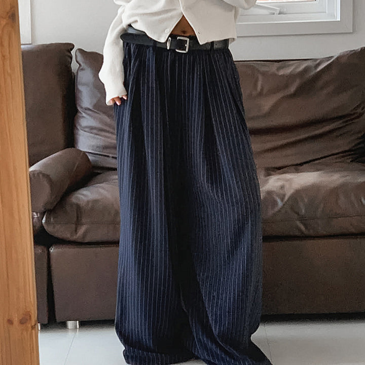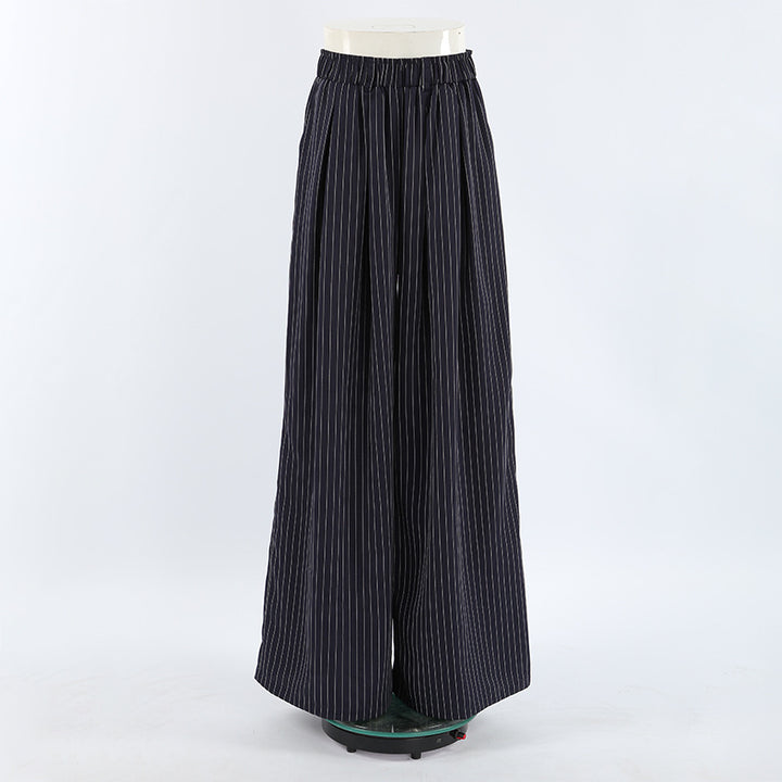 Lazy wind retro striped navy blue loose wide-leg pants women's design sense versatile high waist casual drape pants
