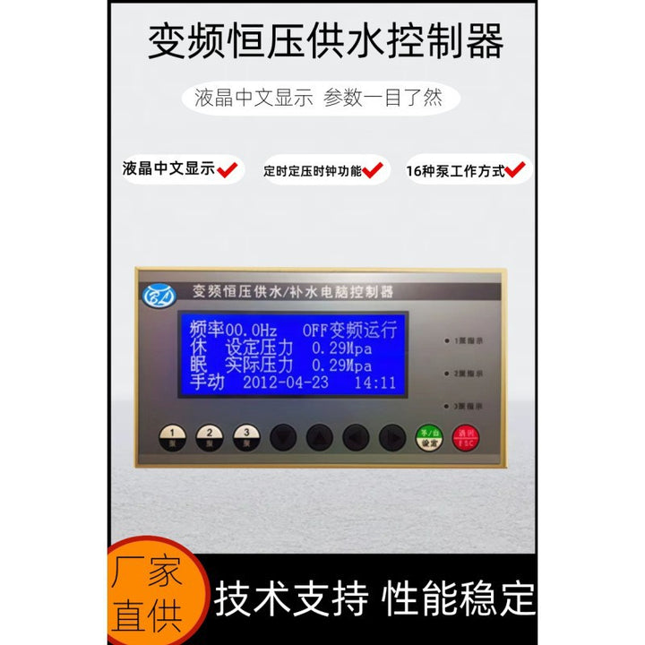 LCD Chinese display frequency conversion constant pressure water supply controller one-to-three timing switching pump dormant power distribution ca...