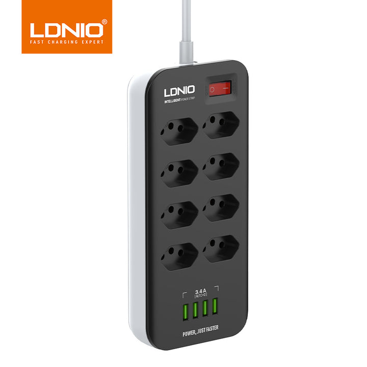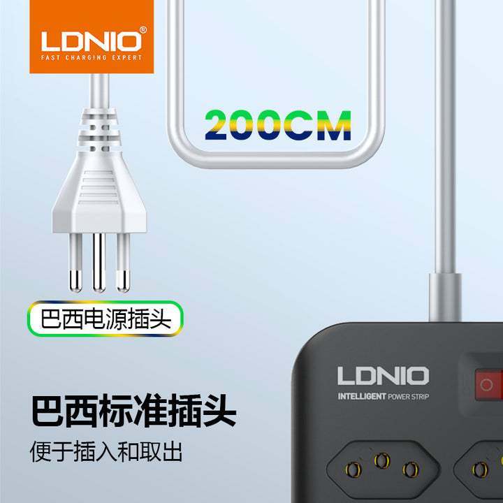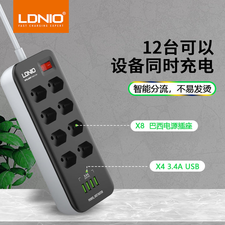 LDNIO Brazilian standard eight-hole power strip USB four-port Brazilian standard high-power household desktop with cable socket factory