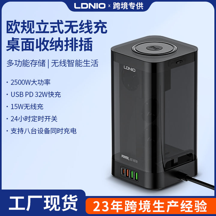 LDNIO European standard vertical wireless charging socket, European standard desktop fast charging power strip European storage socket