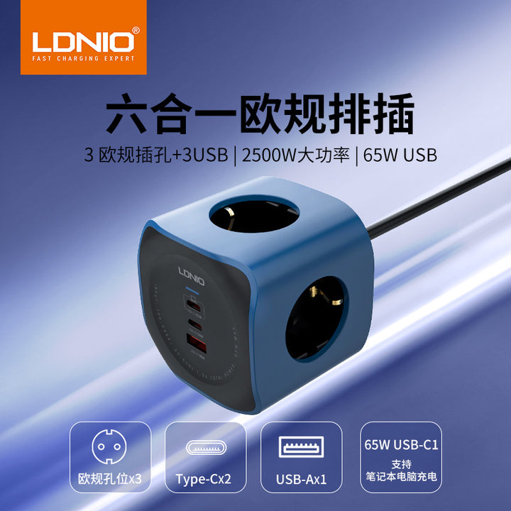 LDNIO smart Rubik's Cube socket Small portable TypeC fast charging high power strip British standard European standard socket