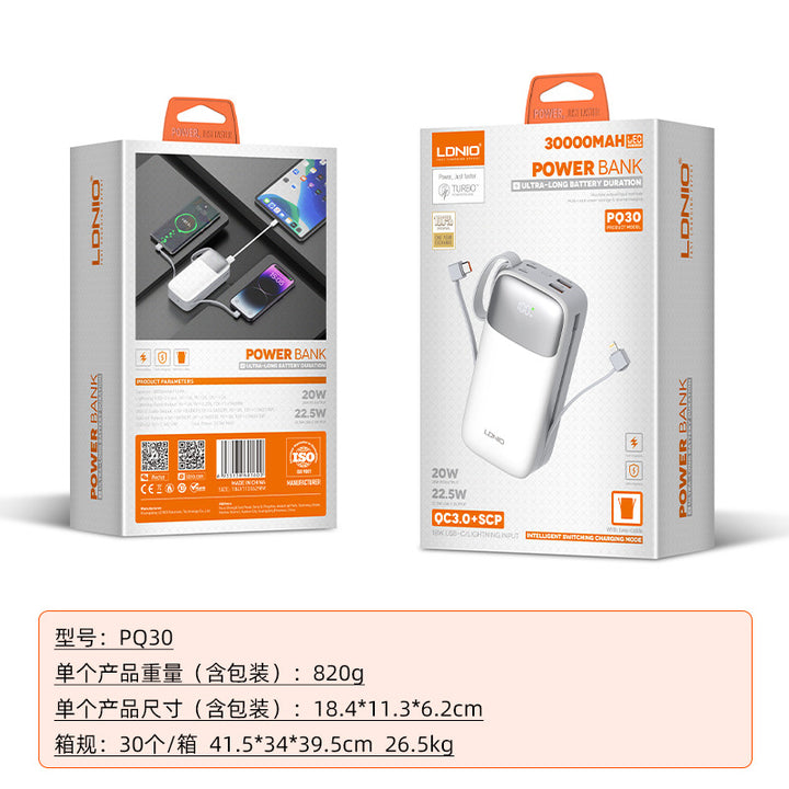 LDNIO30000 mAh Large Capacity Compact Portable Mini Mobile Power Supply Multi-port Fast Charging Power Bank Factory
