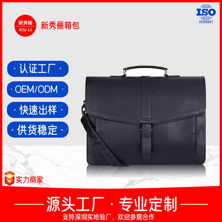 Leather briefcase men's handbag large capacity computer bag men's bag business documents gift meeting bag
