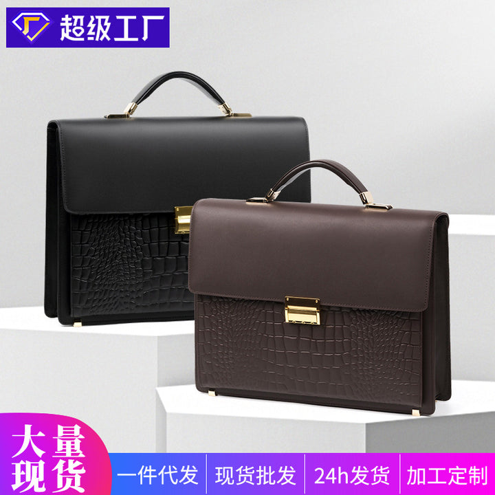 Leather men's bag business commuter men's briefcase anti-theft password lock versatile computer bag cowhide men's handbag