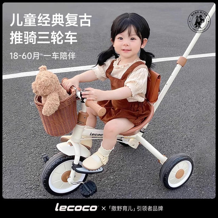 Lecoco Leka baby tricycle baby stroller free of inflation with push rod toddler bicycle children's tricycle