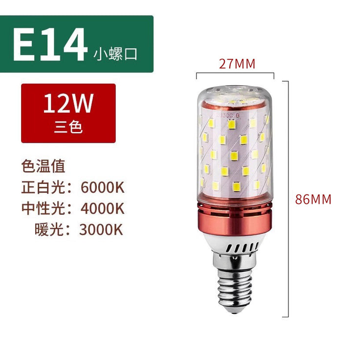 LED bulb corn lamp household e27 thread e14 screw energy-saving lamp warm white three-color light lighting chandelier light source