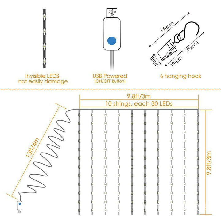 USB remote control 3 * 3 meters copper wire curtain light with hook, USB remote control 3 * 2 meters copper wire curtain light with hook, USB remote control 3 * 1m copper wire curtain light with hook |