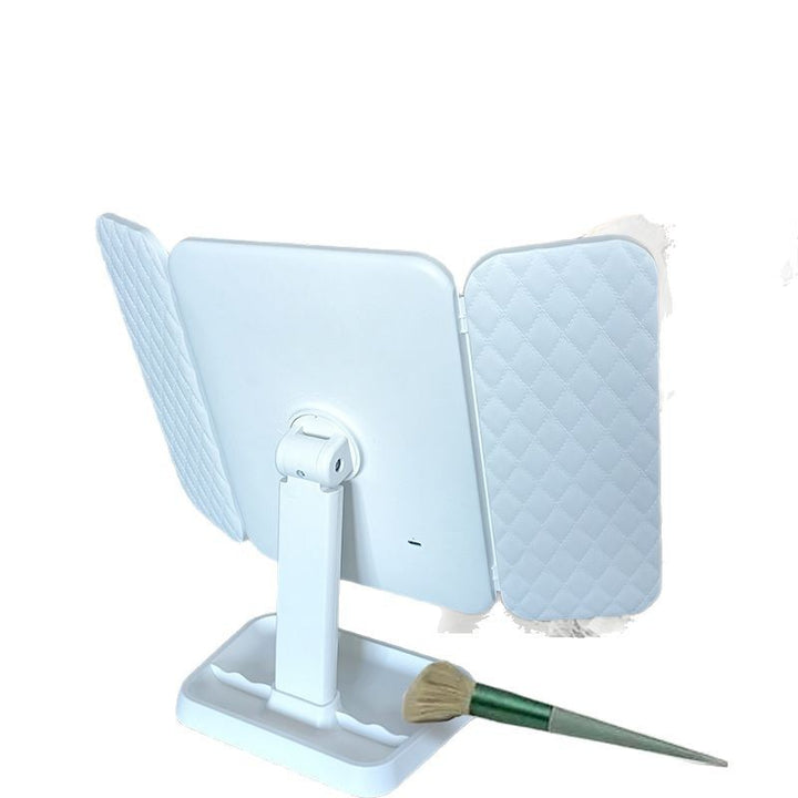LED desktop makeup mirror 2-in-1 shell three-sided storage box folding dressing mirror smart fill light beauty mirror