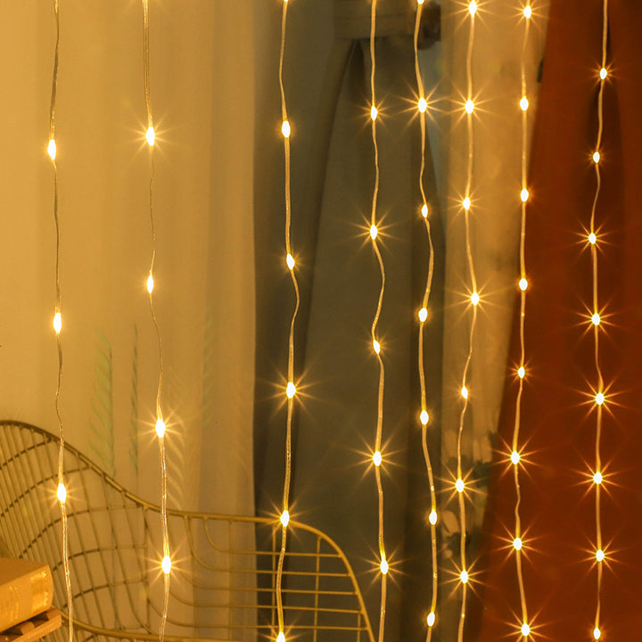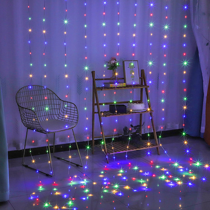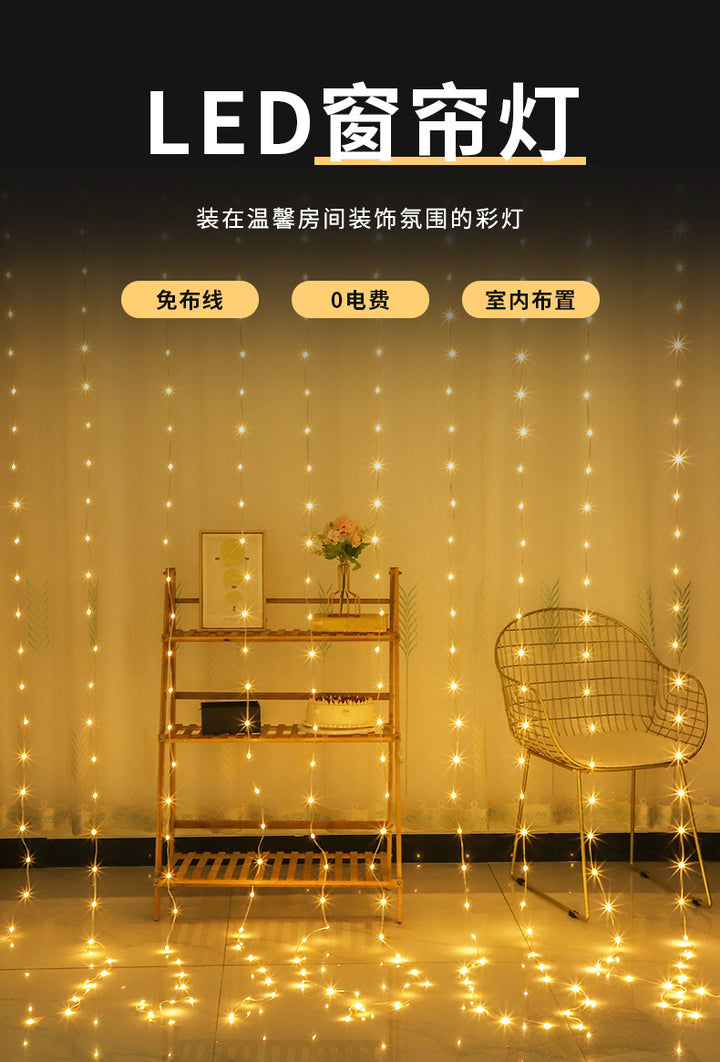 LED leather line curtain light 3 * 3usb remote control solar curtain running water light bedroom decoration running water leather line light string
