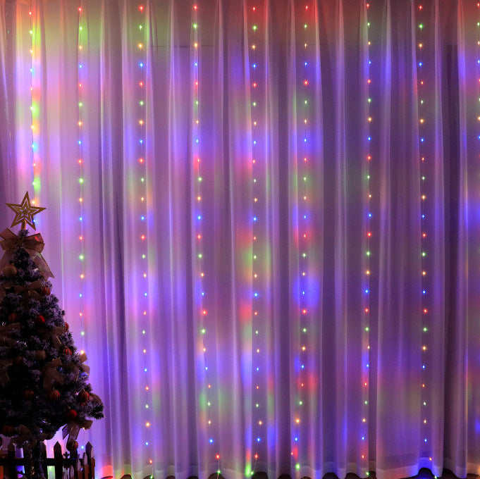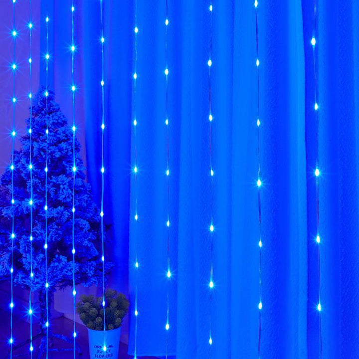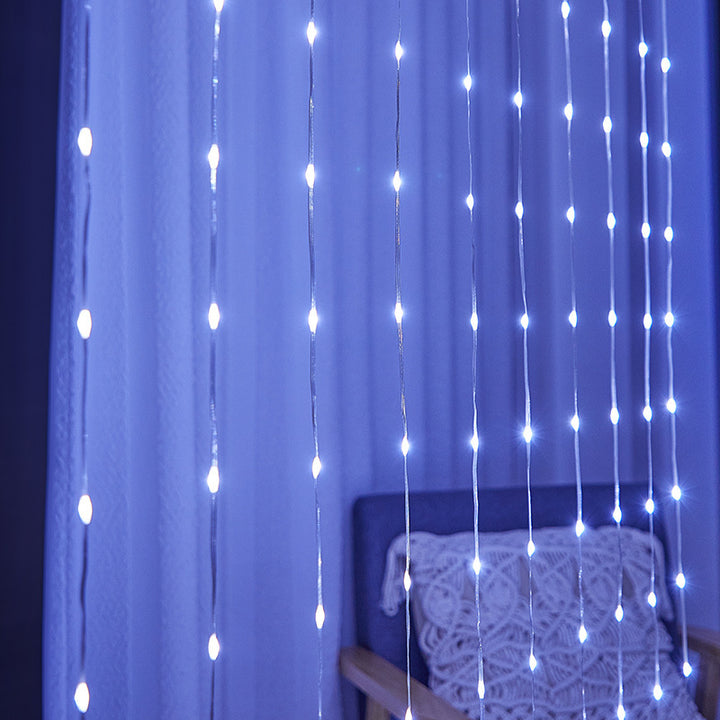 LED leather wire light curtain light 3 * 3 meters waterfall light string remote control lantern string outdoor waterproof Christmas copper wire cur...