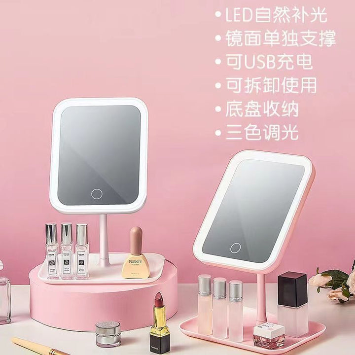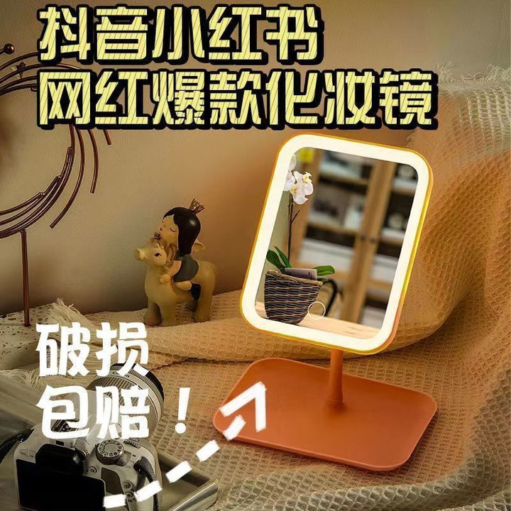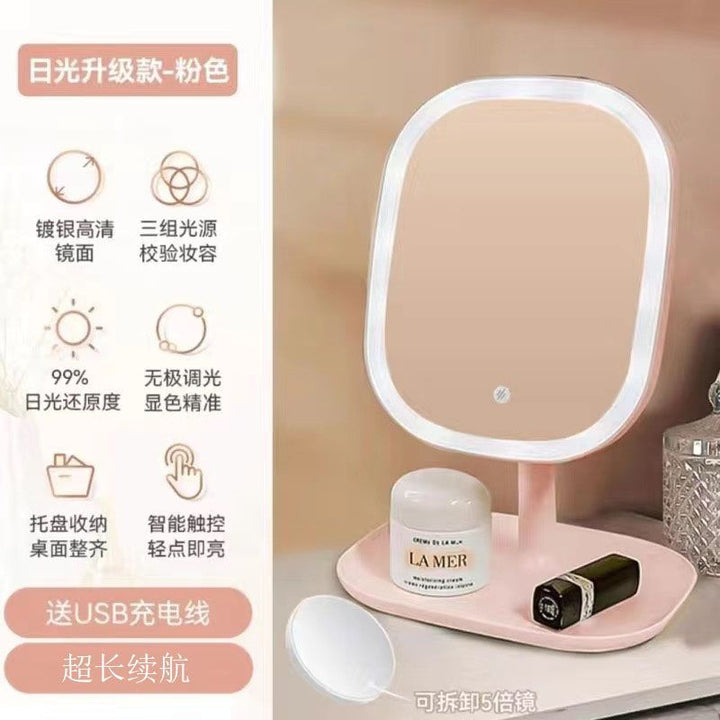 LED makeup mirror with lamp desktop Internet celebrity female fill light small mirror ins wind dormitory desktop portable small vanity mirror