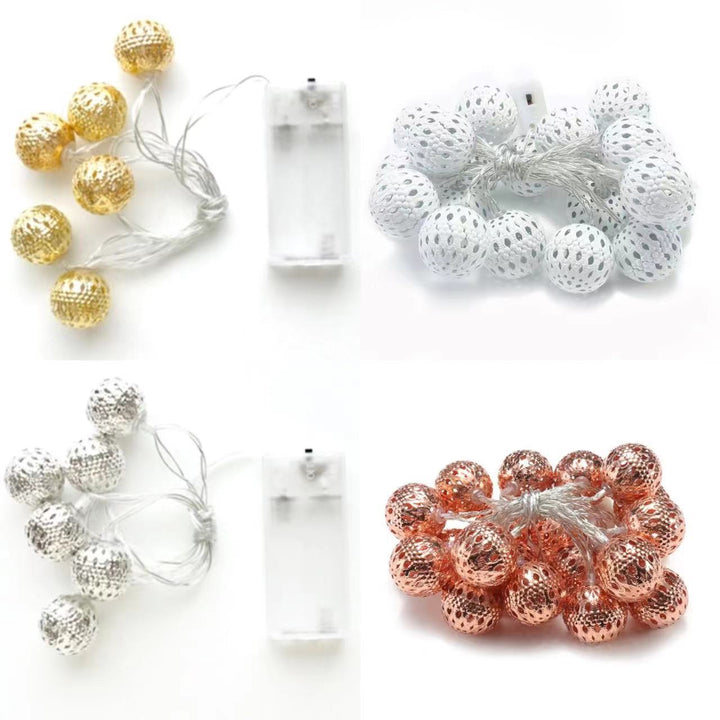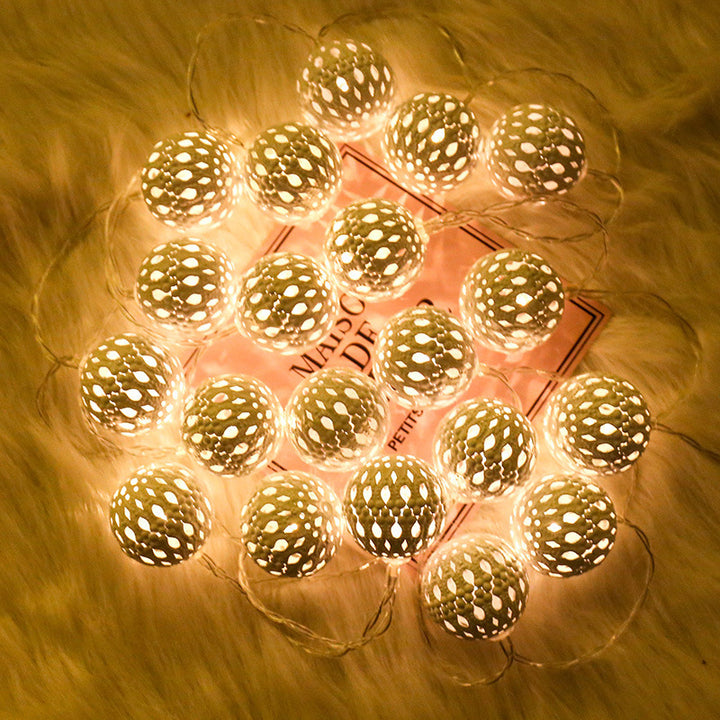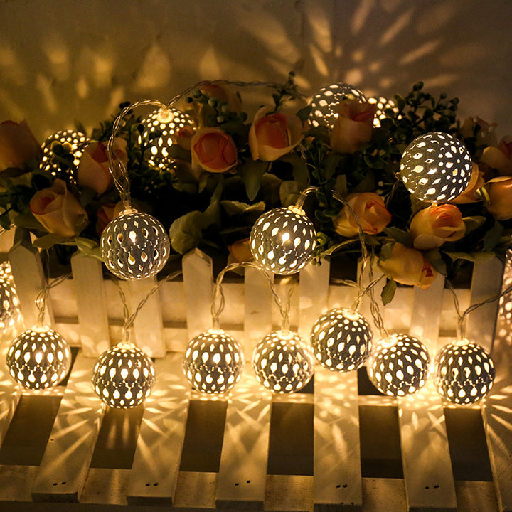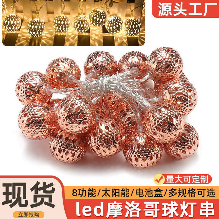 LED Moroccan ball light string, wrought iron hollow ball battery light 8 functions solar decorative string light string