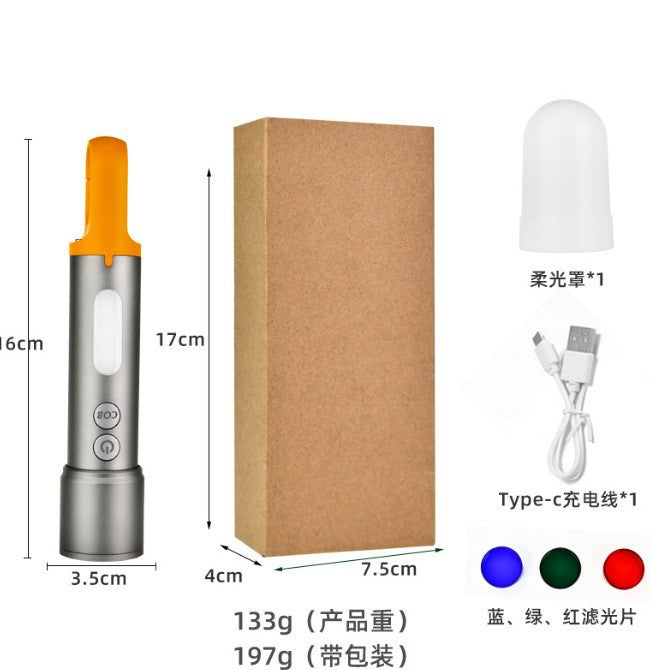 LED white laser with side light Type-C charging multi-function camping aluminum alloy telescopic zoom mini flashlight