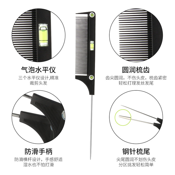 Level Precision Cut Hair Comb Hair Salon Professional Cut Hair Non-slip Handle Steel Needle Comb Level Tail Haircut Comb
