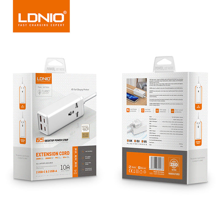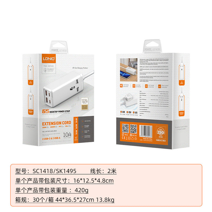 Lidenuo 65W high power TypeC socket power strip travel British standard US standard fast charging plug-in board extension cable wholesale