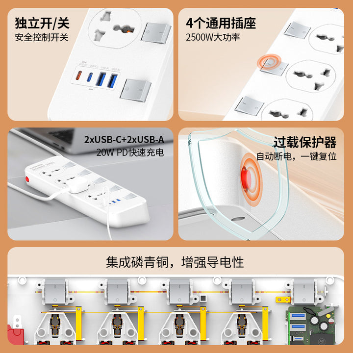 Lidenuo independent switch universal power strip 4USB power socket European standard US standard expansion socket patch panel
