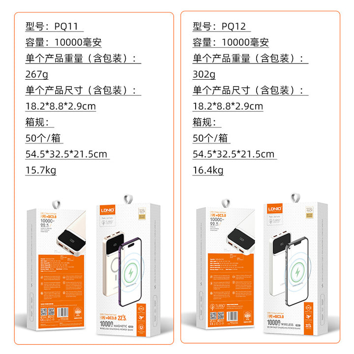 10000 mAh (with wireless charging function) - PQ11, 10000 mAh (with wireless charging function) - Magnetic attraction - PQ12 |