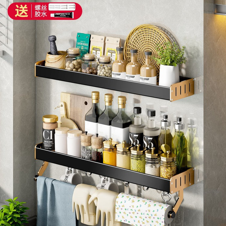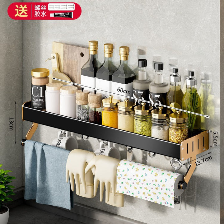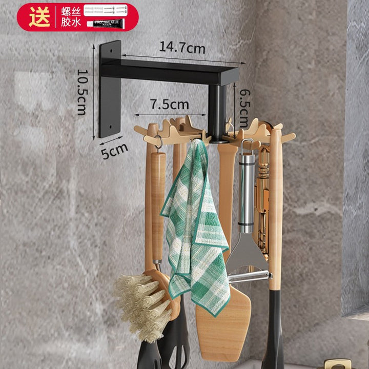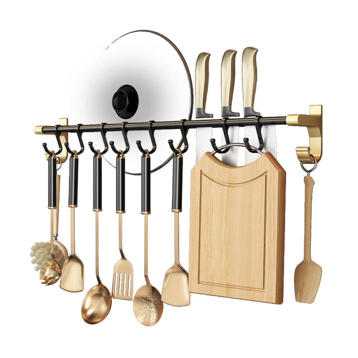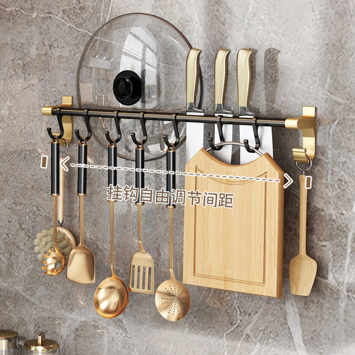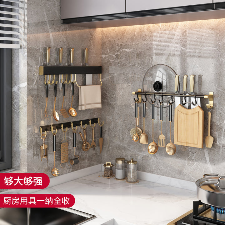 Light Luxury Black Gold Kitchenware Hook Shelf No Punching Spatula Hanger Space Aluminum Knife Holder Wall Hanging Kitchen Pendant