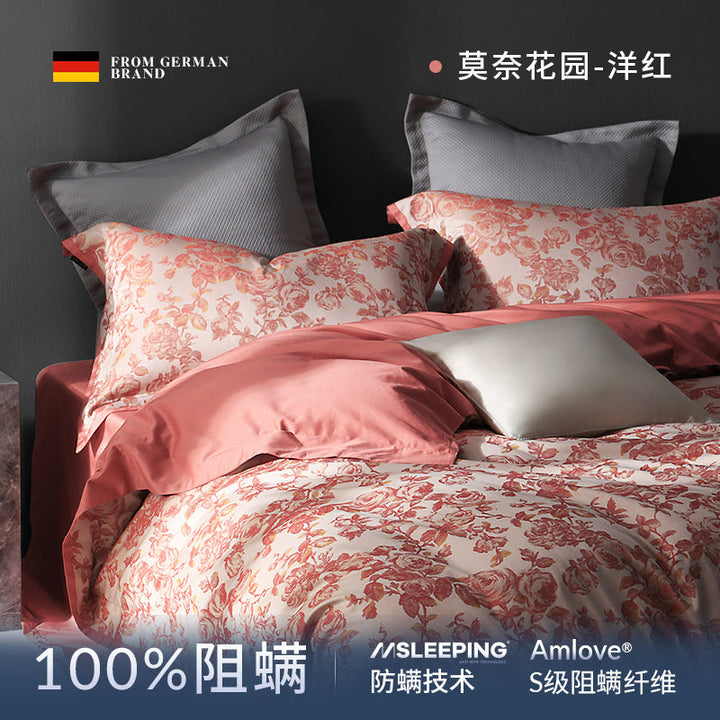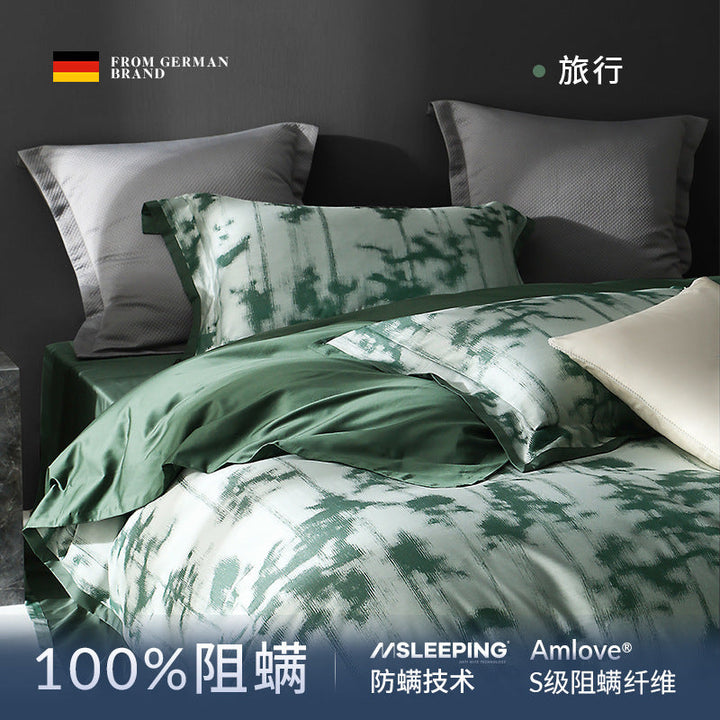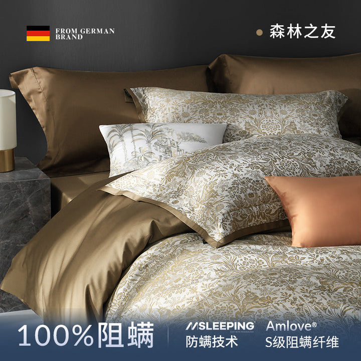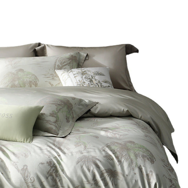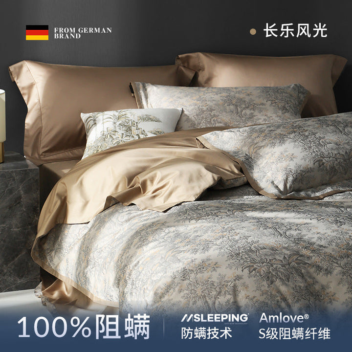 Light luxury high-end 100s long-staple cotton four-piece set, pure cotton yarn-dyed large jacquard cotton quilt cover, retro bedding.